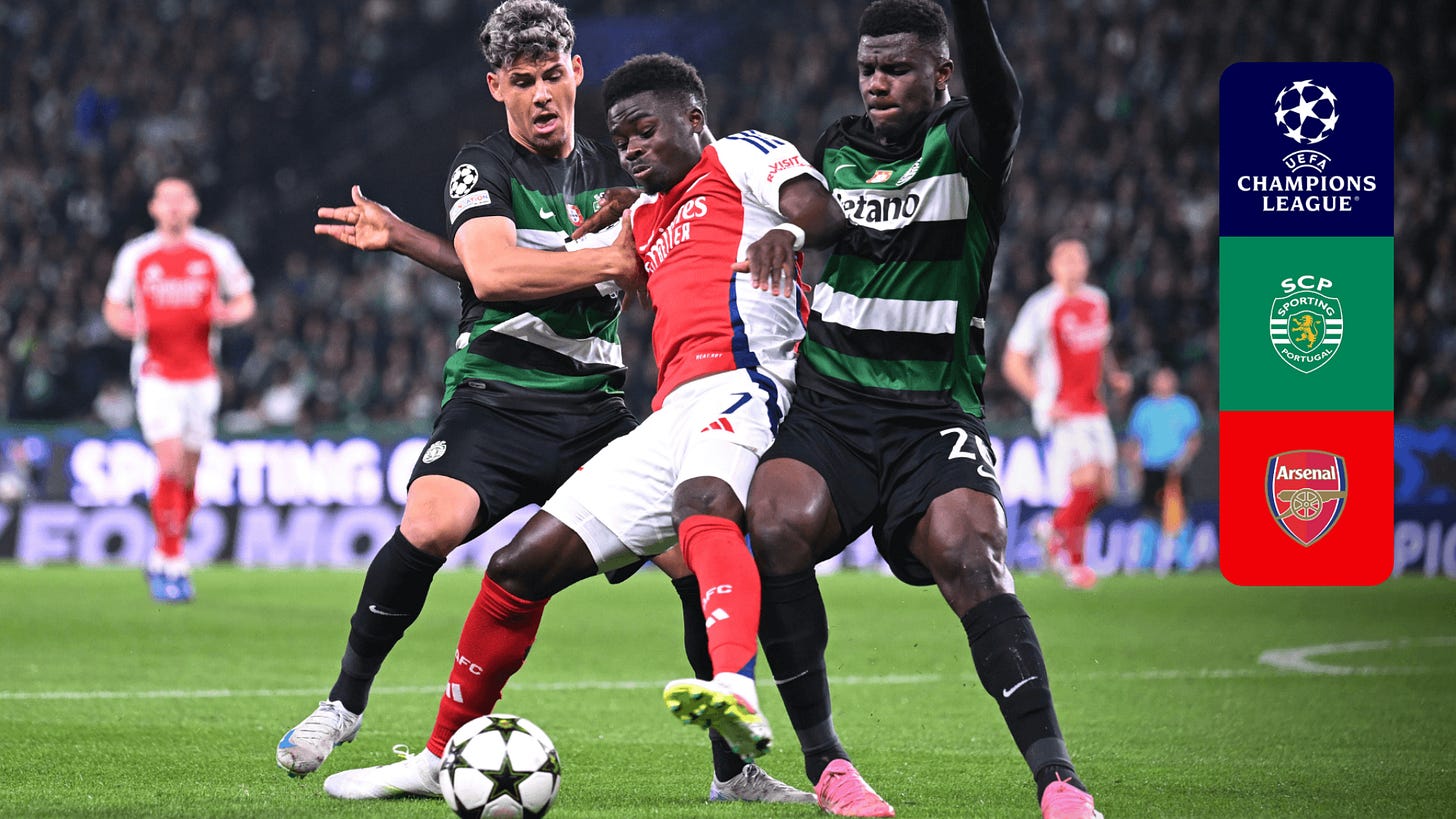 ArsenalArsenal vs Sporting: What Will Decide This TieA complete tactical breakdown of both sides, and where the game will be won and lost over two legs.EBLApr 06, 2026∙ Paid41ShareArsenal vs Sporting 🏆Let’s break it down within an inch of its life so we know EXACTLY what to expect over the two legs…In an in-depth thread, I reveal the key tactical themes that will decide it 🔴⚪️THREAD! 🚨This post is for paid subscribersSubscribeAlready a paid subscriber? Sign in